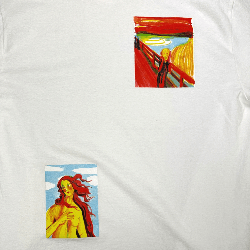 Long-sleeve crewneck tee with a ribbed collar. Measures approximately 23.5 inches armpit to armpit by 30 inches top point of collar to bottom of garment.